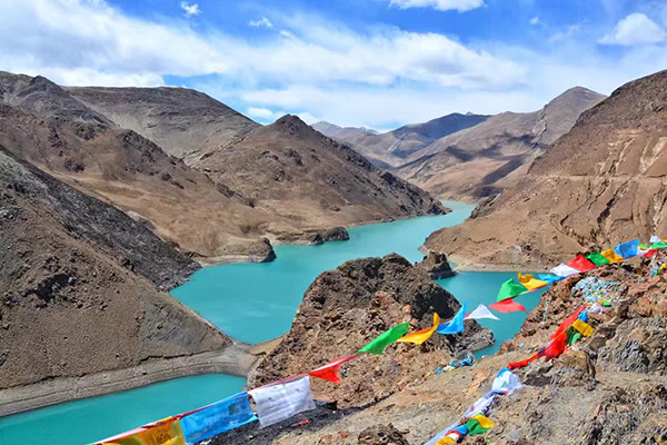 早晨從拉薩出發(fā),翻越岡巴拉山,駛往享有天上圣湖之美譽的羊卓雍湖,如洗的蘭天和朵朵白云融為一體,秀美如畫的風景讓你陶醉于這世外桃源般的人間仙景中久久不忍離去。環(huán)繞圣湖途經(jīng)世紀卡若拉冰川,是電影《紅河谷》外景拍攝地。滿拉水庫與羊卓雍錯有著迥異,卻是極致美麗。是以灌溉、發(fā)電為主,兼有防洪、旅游等綜合效益的大型水利建設,有“西藏第一壩”之稱,距縣城28公里。