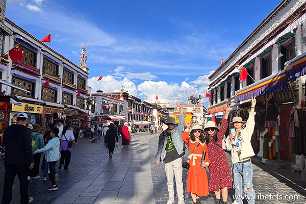 第二天:拉薩市內(nèi)一日游,吃完早餐后,我們的拉薩市內(nèi)一日游就開(kāi)始了。我們?nèi)チ瞬歼_(dá)拉宮、和平紀(jì)念碑、扎基寺、八廓街等地方,參觀了藏味十足的藏族建筑,品嘗了西藏當(dāng)?shù)氐奶厣〕裕踩贿€給我們安排了藏裝旅拍,真的開(kāi)心極了!
